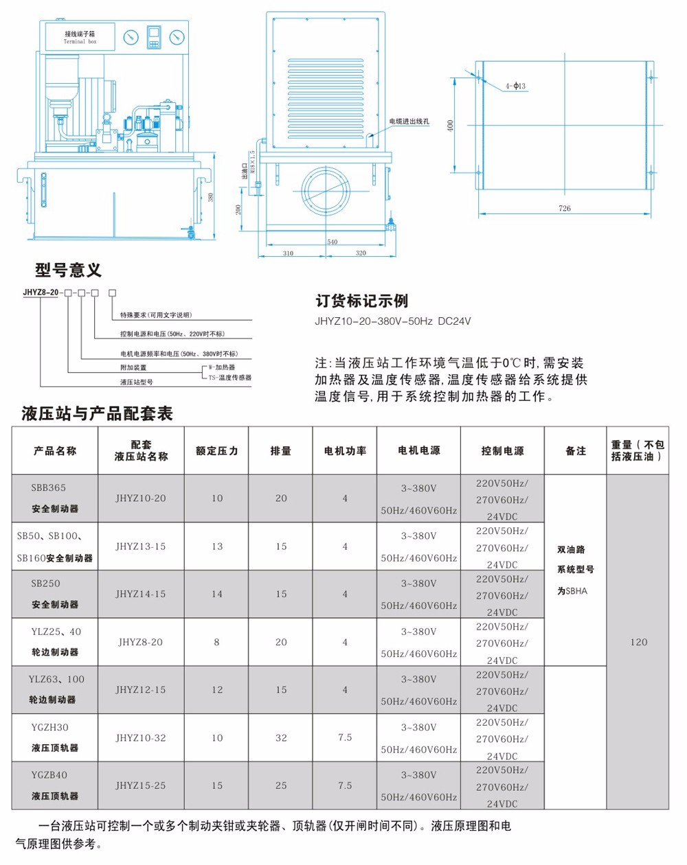 YZ(J)型液壓站主要作為YJGQ系列液壓夾軌器、YLBZ系列液壓輪邊制動器、YDGZ系列液壓頂軌制動器驅(qū)動動力源;多功能復(fù)合控制方式,在斷電檢修時,依靠人力實現(xiàn)上壓過程。